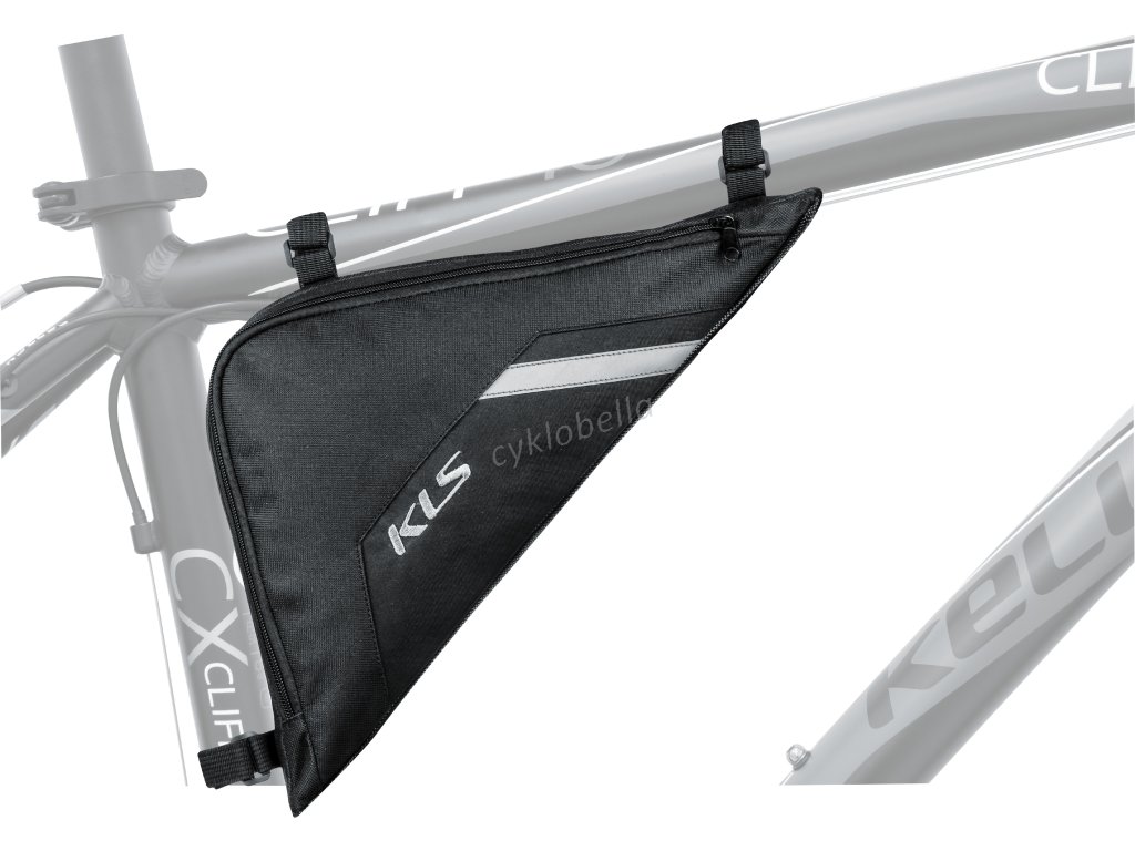 Rámová brašna KLS TRIANGLE je vyrobena z voděodolného materiálu Polyester 600D. Geometrie brašny KLS TRIANGLE je navržena tak, aby ji bylo možné uchytit do většiny rámů. Spodní část brašny tvoří lesklý materiál jednoduchý na čištění. Uvnitř brašny je malá síťová přihrádka na klíče nebo jiné drobnosti. KLS TRIANGLE má dvě velikosti, jedna s objemem přibližně 1 l a druhá s objemem 2,5 l.
