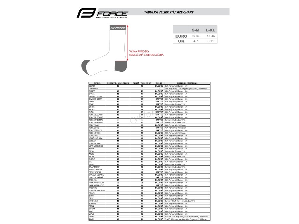 Vysoké cyklistické ponožky s anatomickým střihem, funkční výztuhou špičky a paty.vyšší cyklistické ponožky FORCE i pro další sporty