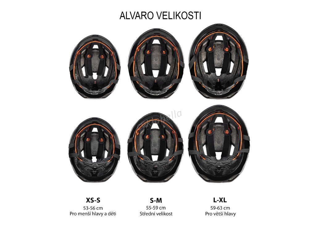 Přilba ALVARO je k dispozici ve třech velikostech: XS-S (53-56 cm), S-M (55-59 cm) a L-XL (59-63 cm), což zaručuje perfektní fit pro širokou škálu velikostí hlavy.