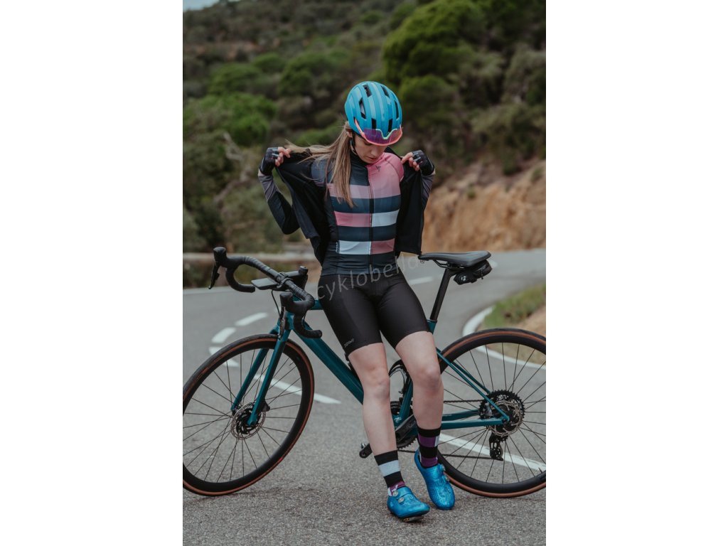 Mazzana je dámský cyklistický dres úzkého střihu vyrobený z elastického a prodyšného materiálu Light MESH, který velmi dobře odvádí vlhkost a rychle schne. V přední části je celopropínací YKK zip, na bocích je použita lehká prodyšná síťovina. Zadní část dresu je výrazně prodloužená a je na ní klasická trojkapsa. Na prostřední kapse je našita menší kapsička na zip, lemovaná reflexními prvky. Na dresu je několik bezpečnostních reflexních prvků, včetně nápisu ''Come on, it's not that far'' inspirovaným heslem celé kolekce. Materiálové složení: HLAVNÍ MATERIÁL: 86% POLYESTER, 14% ELASTAN, KONTRASTNÍ MATERIÁL: 90% POLYESTER, 10% ELASTANDoplňkové parametry