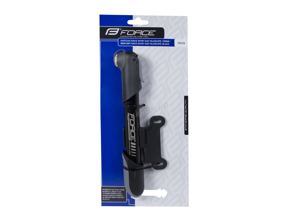 DUOPÍST na všechny druhy ventilků (AV - moto, FV - galuskový, DV - klasický)černá, včetně držáku pod košík