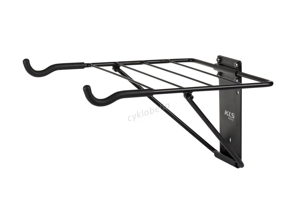 Skladací nástenný vešiak na bicykel s minimálnymi požiadavkami na priestor. Možnosť odložiť sin a vešiak aj prilbu a iné doplnky. Gumová ochrana proti poškriabaniu rámu.