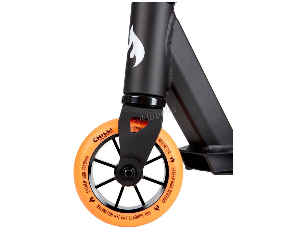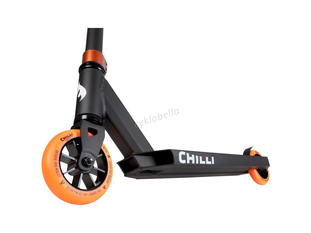 Výborná freestyle koloběžka pro záčátečníky nebo mladé mírně pokročilé jezdce. Koloběžka vychází z nejprodávanějšího modelu Chilli Reaper, kde si odnesla jen to nejlepší! Jedinou vyjímkou je ocelová vidlice a neintegrovaný headset.