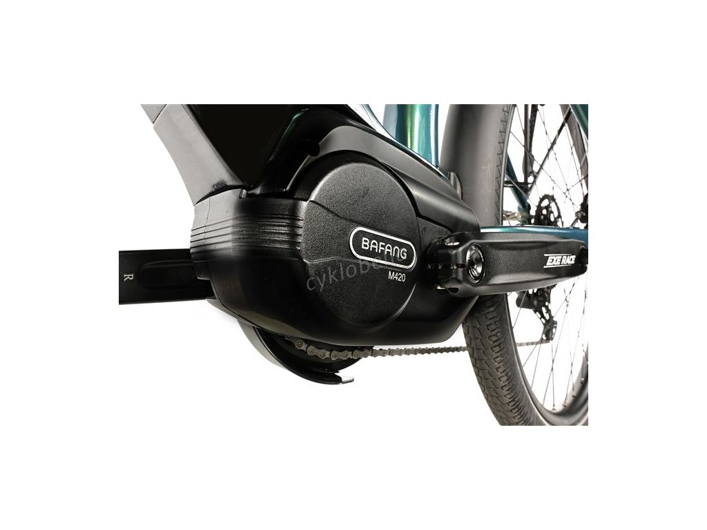 Elektromotor Bafang M420 vyniká velmi plynulým a tichým chodem a nadprůměrným výkonem. Nabízí výkon 350 W a vysoký kroutící moment až 80 Nm.