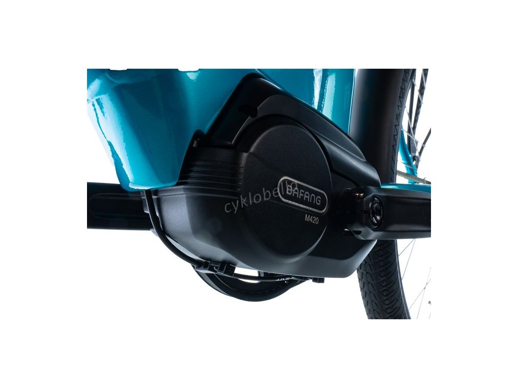 Elektromotor Bafang M420 vyniká velmi plynulým a tichým chodem a nadprůměrným výkonem. Nabízí nominální výkon 250 W, max. výkon 550 W a vysoký kroutící moment až 80 Nm.