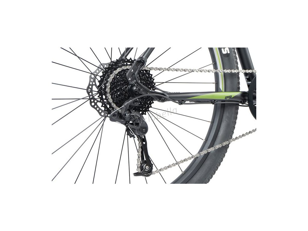Odpružená přední vidlice vám přinese pohodlí a komfort při jízdě po kořenech i zpevněných cestách. Při řazení se můžete spolehnout na kvalitní přehazovačku s 9 převody.