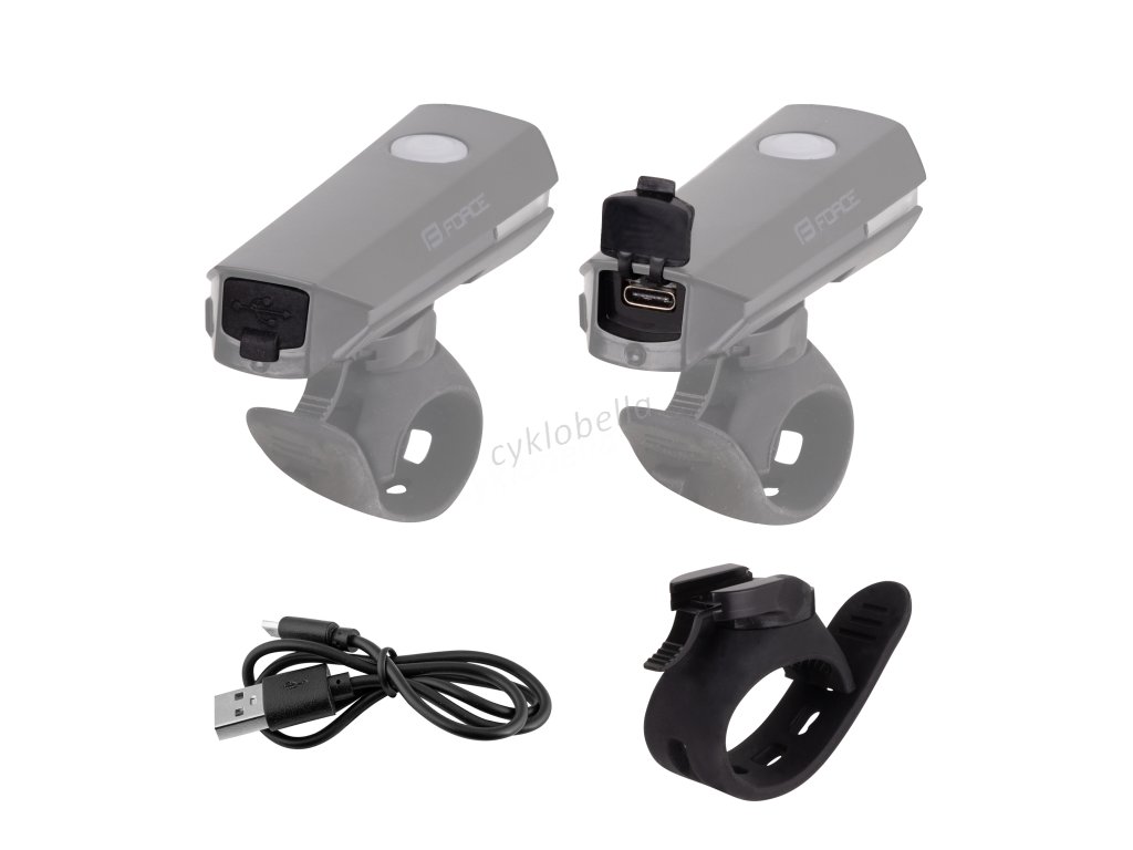 přední silikonové nabíjecí USB světlo, 3 Watt supersvítivá LED dioda, 3 funkce: svícení nízké (50