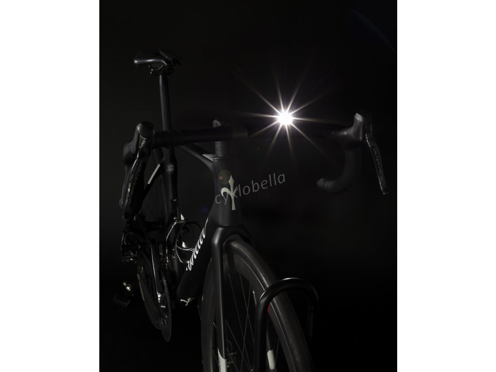 přední světlo, 1 Watt LED dioda, 3 funkce: svícení 100%, svícení 50%, blikání, intenzita osvětlení