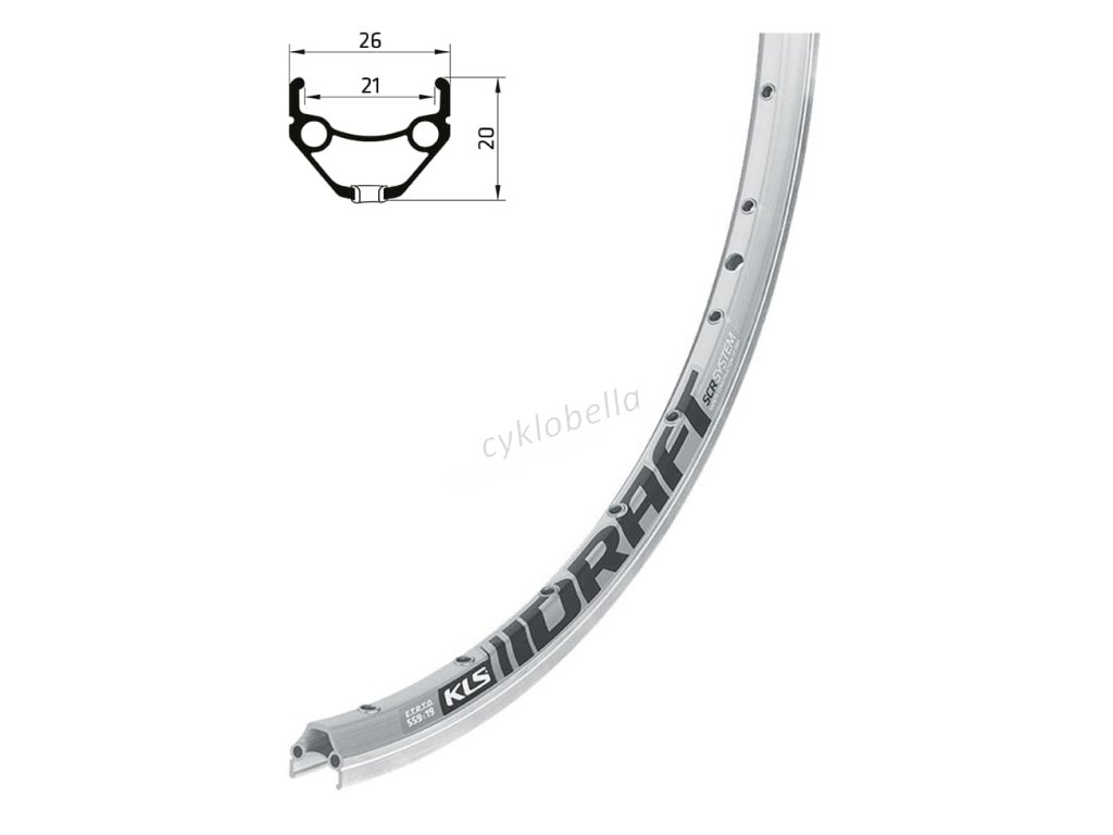 Ráfek KLS DRAFT broušený, 32H, 1 Nýt, AV, 28"/29" silver