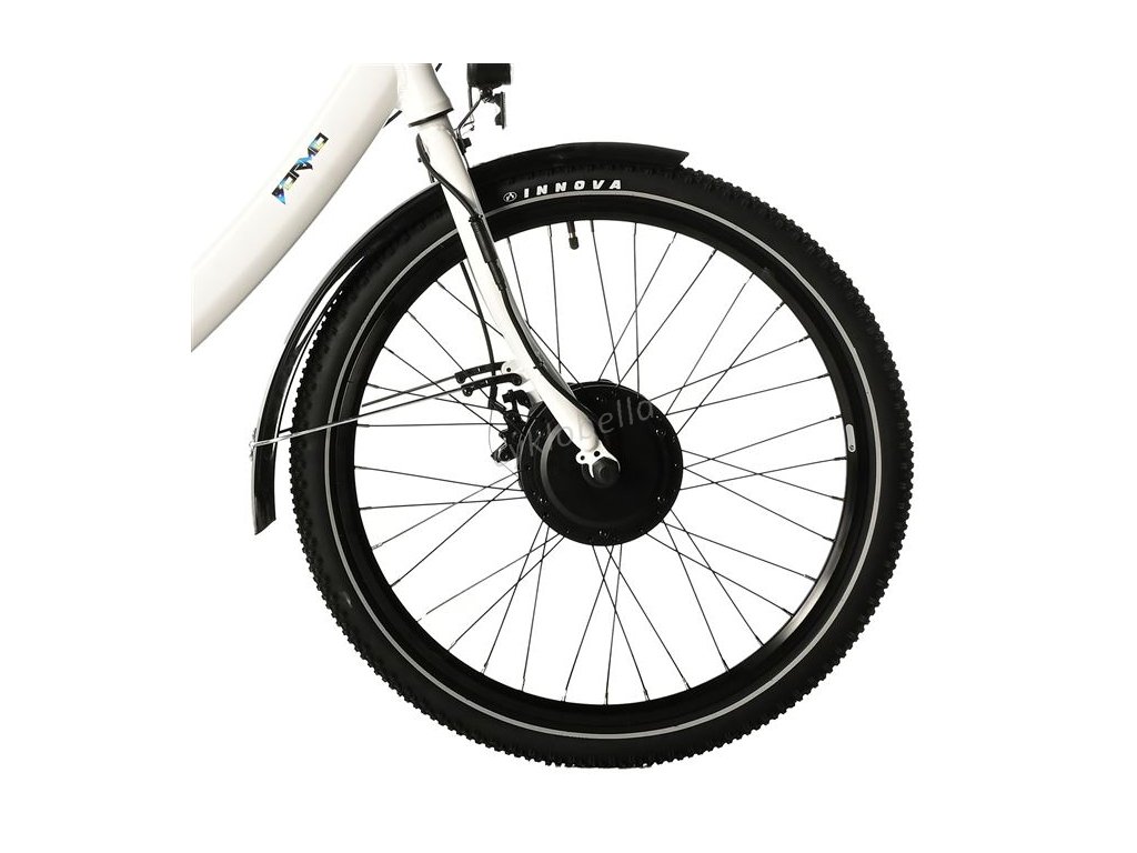 Přední elektromotor BAFANG vyniká plynulým a tichým chodem. Nabízí nominální výkon 250 W, max. výkon 350 W a kroutící moment 45 Nm.