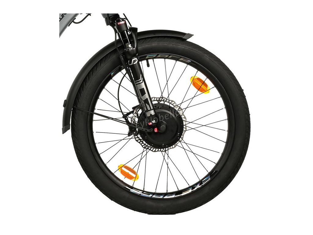 Přední elektromotor BAFANG vyniká plynulým a tichým chodem. Nabízí nominální výkon 250 W, max. výkon 350 W a kroutící moment 45 Nm.